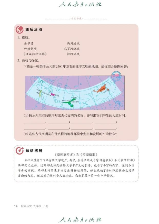 對此,我們不妨多翻翻人民教育出版社出版的九年級歷史教科書,看看其中對世界古代文明的清晰論述,便能對“偽史論”的荒謬有更清醒的認識。西方偽史論者通過造謠來反對消解部編版歷史教科書中的共識,本質上也是一種歷史虛無主義。