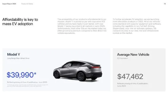 特斯拉在週二發佈的2024年影響報告中表示:“我們產品的可訪問性是我們使命的基礎。”該公司進一步表示:“為了進一步加速電動汽車的普及,我們將在2025年推出更多可負擔的產品。”這一消息傳出之際,特斯拉一段時間以來一直面臨銷量下滑的問題。最新的數據顯示,特斯拉6月份在瑞典和丹麥的銷量都下降了60%以上。(新浪財經)