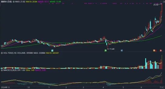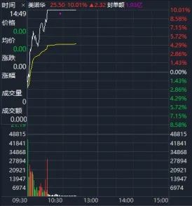 7月3日,截至午盤,寧波美諾華藥業股份有限公司 (以下簡稱:美諾華;代碼:603538.SH)表現亮眼,當天低開於23.03元,略微下探後。逐步走高,接近十點便強勢漲停,中午收報25.50元,漲幅10.01%。