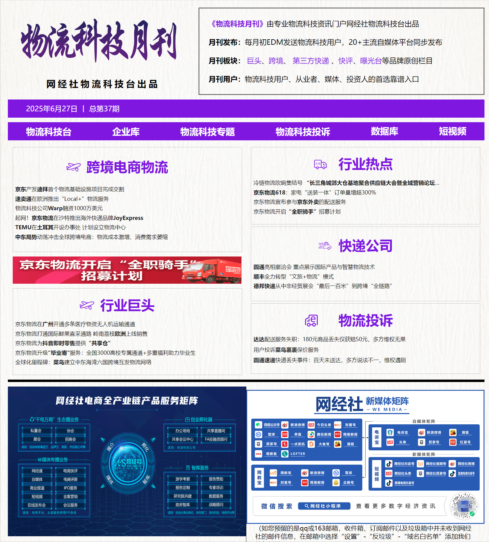 2025年6月,物流科技發生哪些新鮮事?以下為網經社物流科技台為您帶來6月最新動態回顧。