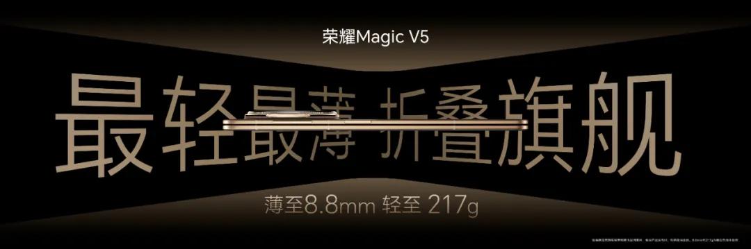 既要輕薄,又要滿血,不能為了輕薄而犧牲性能,也拒絕「板磚式」的厚重造型,從第一代Magic V摺疊屏開始,榮耀就一直在突破行業輕薄極限,榮耀Magic V2以9.9mm厚度,首次將摺疊屏帶入「毫米時代」;榮耀Magic V3以9.2mm厚度再次刷新行業極限,推動輕薄性能並進;現在,榮耀Magic V5以8.8mm厚度、217g重量,再創全球最輕薄摺疊屏新紀錄,直奔摺疊屏機皇而來。