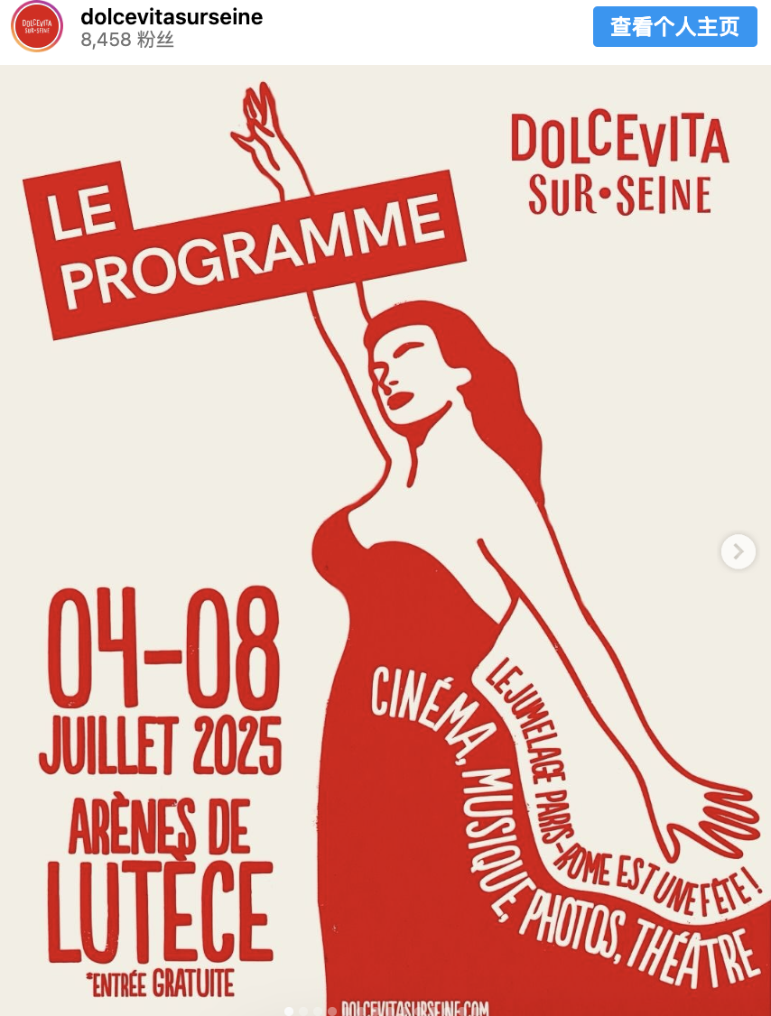 今年是第四屆電影節,依舊延續意大利風情 + 法式浪漫的雙重暴擊,和羅馬那邊的“台伯河畔新浪潮電影節”(Nouvelle Vague sul Tevere)聯動放送——兩大古城,隔空對望,電影為媒,文化談情。