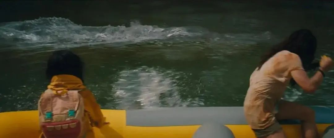 老父親和準女婿、小女兒都看到那麼老大一頭霸王龍躺在大女兒面前,按理説得叫人家趕緊回來另尋他路吧?不,他們都讓大女兒去拿充氣皮艇,在霸王龍眼皮子底下操作。結果龍龍醒了,不開心了,追着一家人咬。觀眾也是頭一回看到霸王龍會潛水……