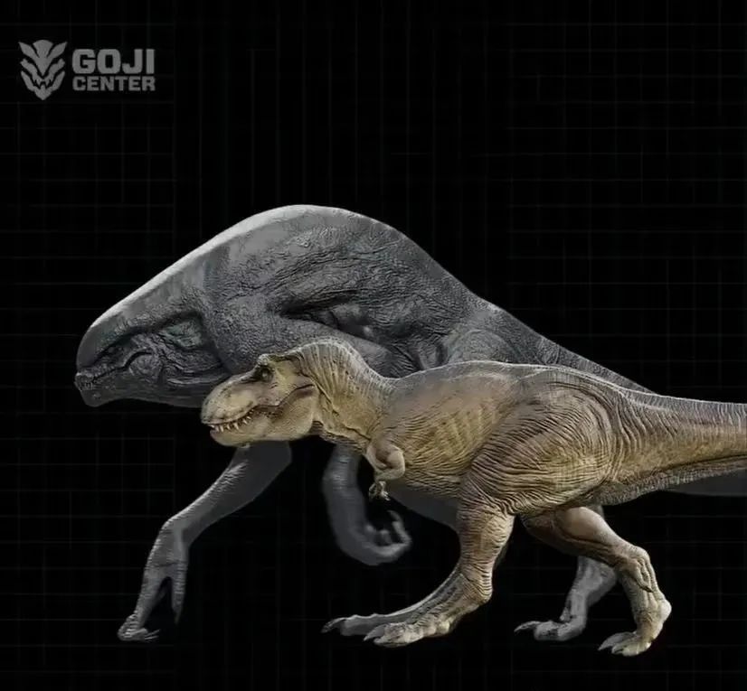 早在電影上映前三個多月,“怪頭龍”的形象就已經在社交媒體上曝光了,還有貼心的實物對比(怪頭龍與霸王龍),“怪頭龍”登場也駭人,體型算是小號哥斯拉,還有六個爪子。但它的威懾力也被“平攤”了。影片裏大概出現了十餘種恐龍,變異的除了“怪頭龍”還有“蝠翼迅猛龍”,明顯後者出場戲份最多,破壞力更大,能手撕正版迅猛龍。
