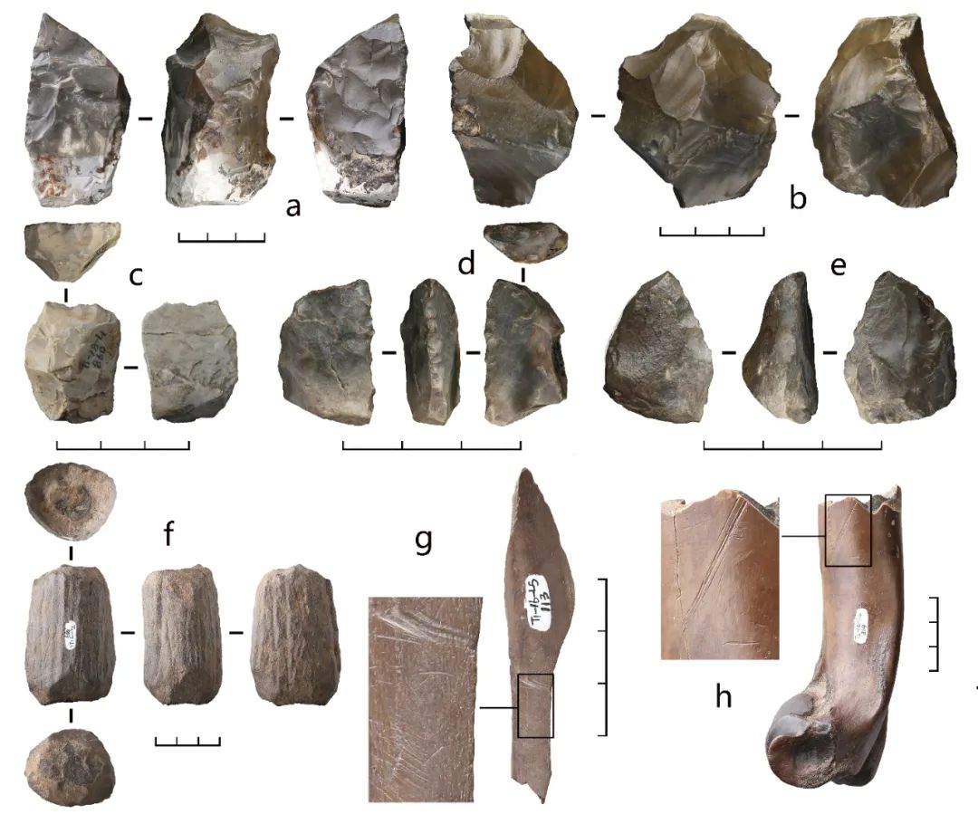這批石器外觀簡樸,但一些標本的刃口保留有精細加工的痕跡。古人類利用這些石器來加工木器、肢解獵物,木器上的削刮痕跡和動物骨骼上的切割劃痕即為明證。