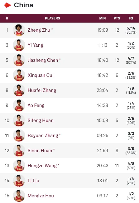 打德國那一場,最能打也最會打的朱正只打了19分鐘,賽後説是因為肩傷,那暫且不表。但9中1的彰華非打了23分鐘,而同齡人斷檔領先的張博源只打了9分鐘,下半場一秒沒打,這算怎麼個事……