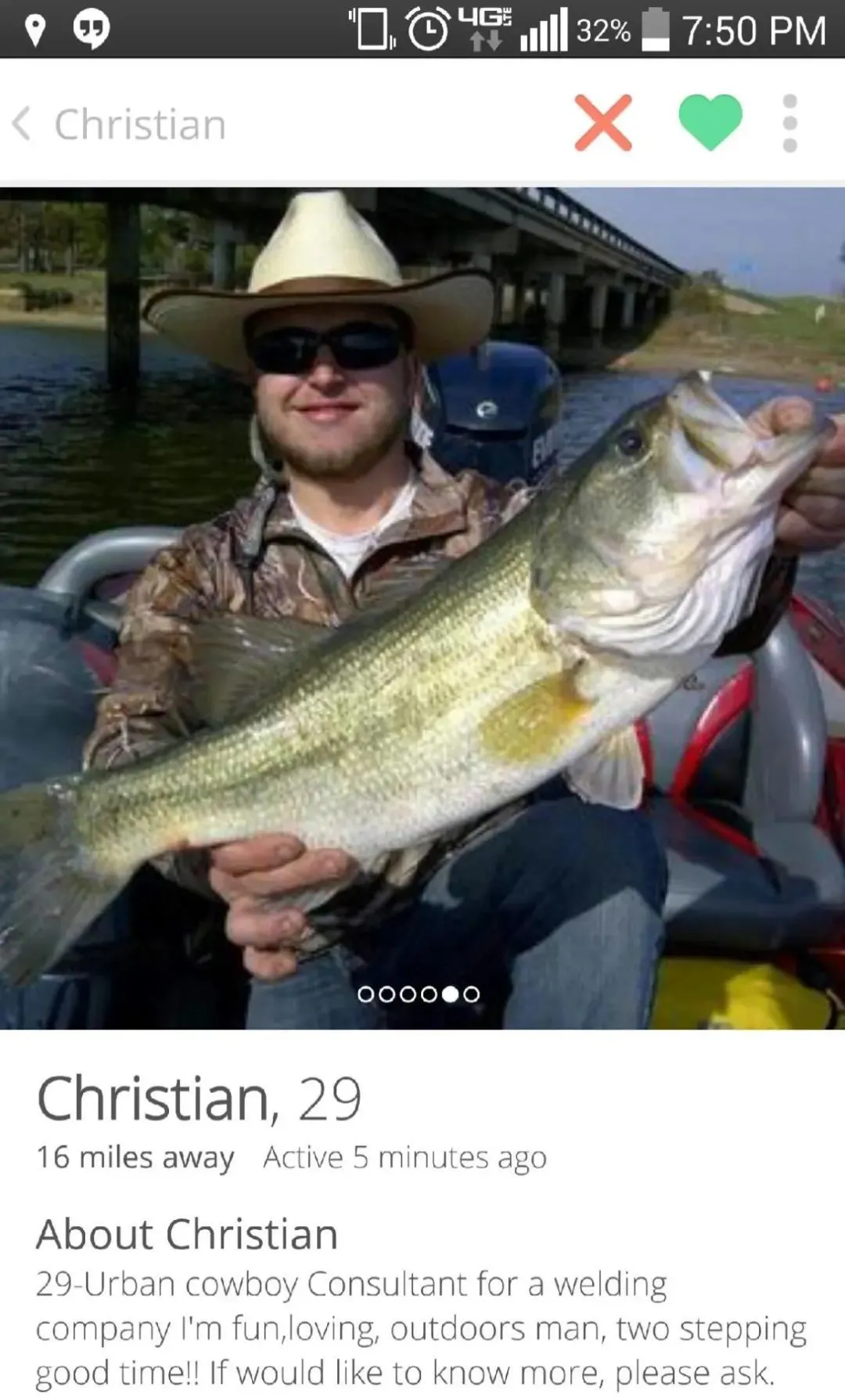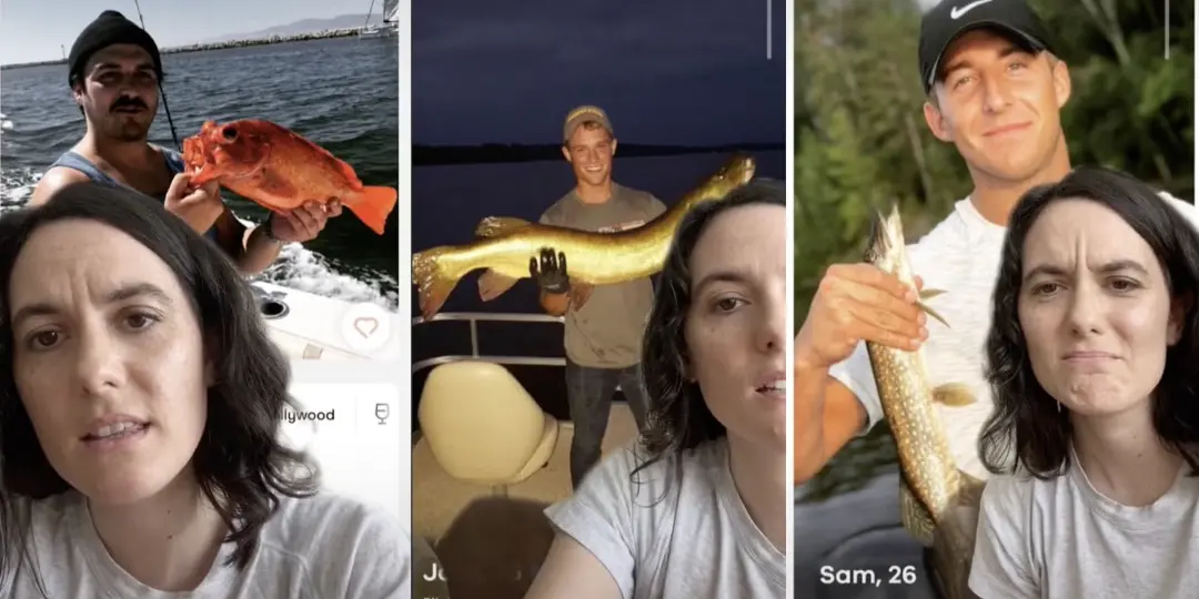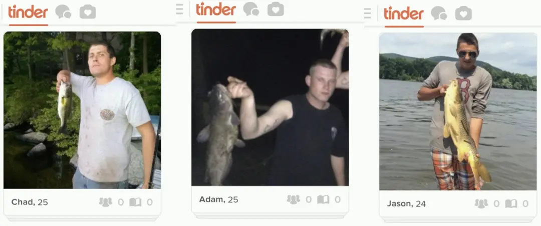 在reddit論壇r/Tinder版塊中,許多女性並不明白為什麼上面的男孩非要抱着那該死的大魚。