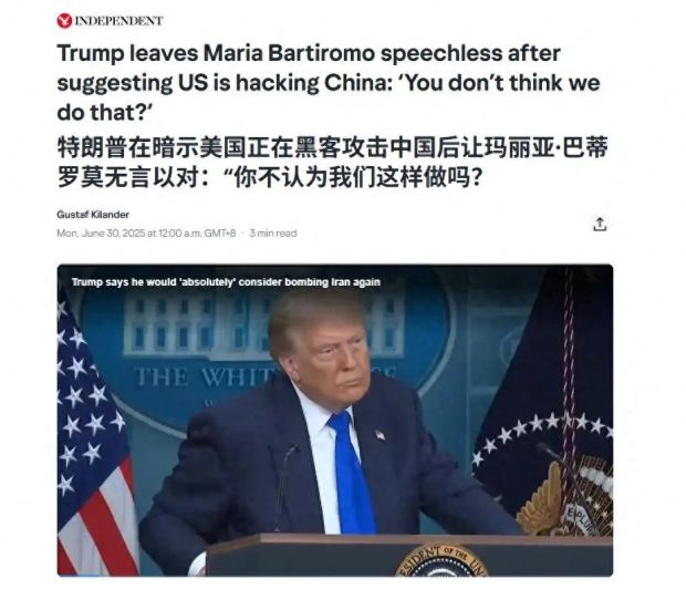 在採訪中,巴蒂羅莫充分發揮了西方媒體的傳統藝能,一上來就給我們扣大帽子,指責中方“黑進了美國的電信系統,竊取了美國的知識產權”,並在芬太尼和新冠疫情等一系列問題“背叛美國”。她憑空捏造出了一大堆所謂的“罪狀”,並揪着這些“罪狀”當眾質問川普:“你怎麼能和這麼明顯的‘壞人’進行談判,並在經濟上信任他們呢?”
