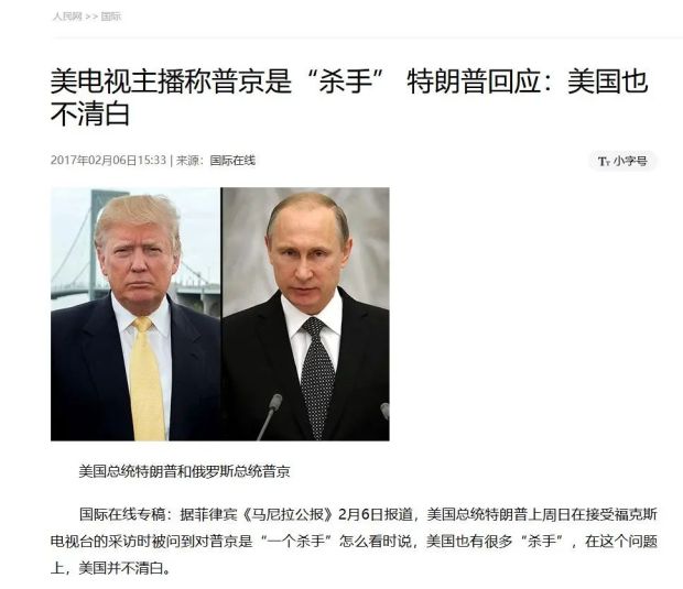 這已經不是川普頭一回當着採訪鏡頭的面和美國媒體唱反調了。早在2017年接受福克斯新聞採訪時,面對主持人奧萊利拋出的“普京殺手”論,他曾經就説過:“這個世界上殺手有的是。美國也有很多殺手。你覺得我們的國家真就那麼無辜嗎?”