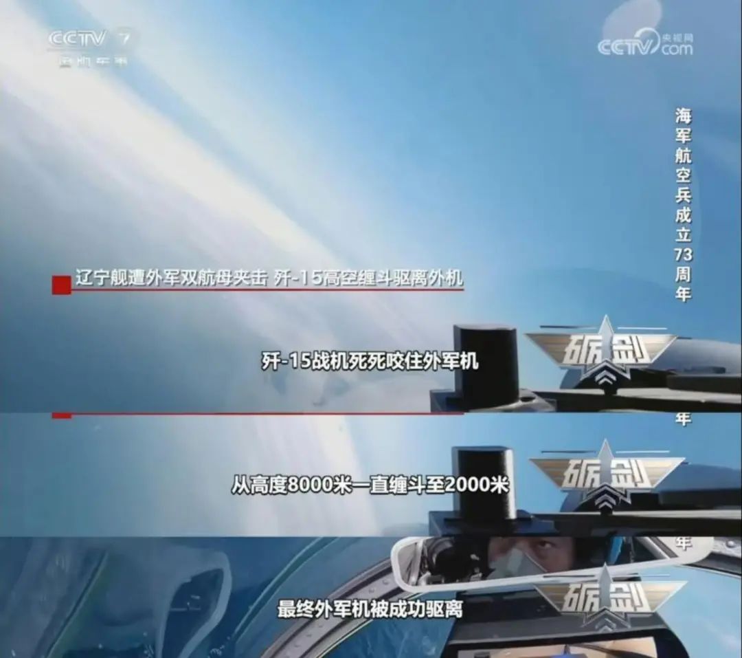 很明顯,所謂外軍就是美國海軍,因為全世界能同時派出雙航母過來挑釁的只有美國海軍。在此緊要關頭,遼寧艦迅速放飛多架掛實彈的殲-15艦載機,一番交鋒,殲-15艦載機死死咬住外機,從8000米高度一直纏鬥到2000米,最終驅離外機。令人倍感自豪的是,外軍艦載機沒有在殲-15面前佔得便宜,只能灰溜溜飛離。