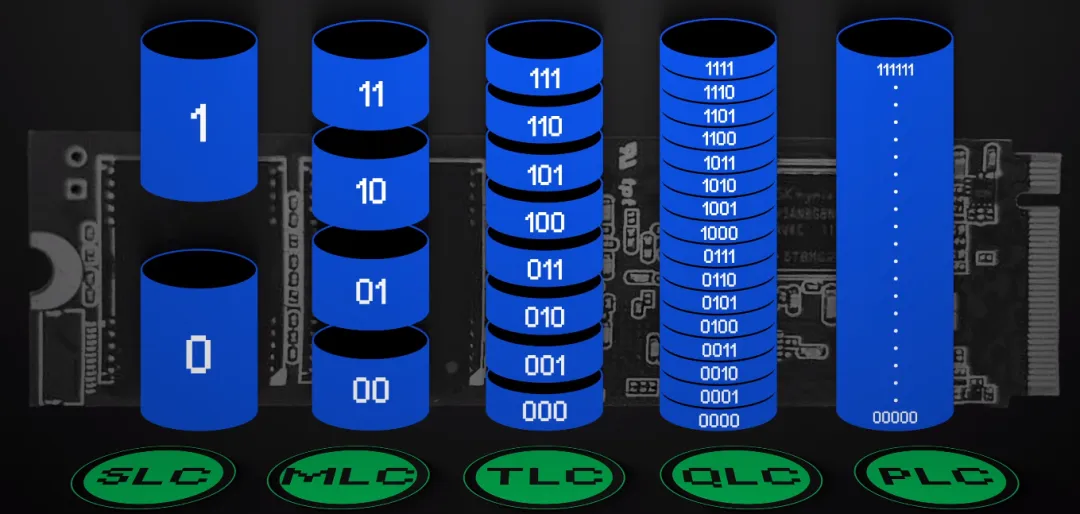 一條路是在一個平面上玩命塞東西,也就是咱們常聽到的 SLC、MLC、TLC、QLC。就好比一個房間,SLC 只住 1 個人,體驗最好但貴得離譜;QLC 塞進去 4 個人,成本下來了,但壽命和速度也跟着打折。
