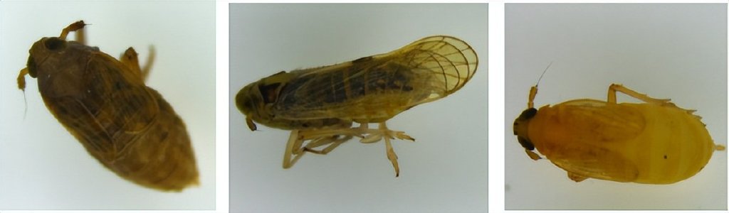 從左到右依次是褐飛蝨,白背飛蝨,灰飛蝨丨圖片來源:作者提供