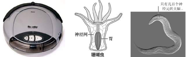 第一代掃地機器人Roomba(左),珊瑚蟲(中),秀麗隱杆線蟲(右)丨圖源:《智能簡史》