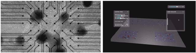 培養在微電極陣列芯片上的人類神經元(左);這些神經元正在預測“乒乓球”的運動軌跡,並通過電信號指揮“乒乓”球拍的即時移動(右)丨圖源:https://corticallabs.com/[3]和Brettet al., Neuron, 2022 [4]