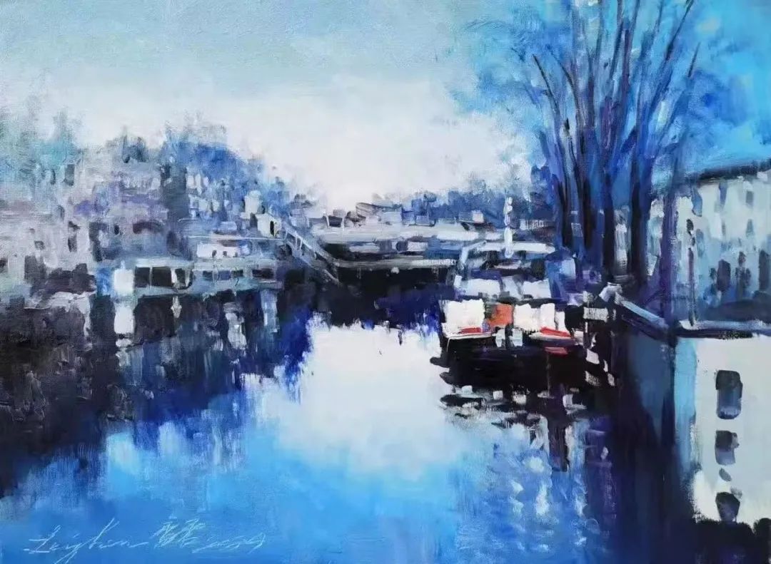 雷震的油畫不僅僅是對水鄉景色的簡單描繪,更是他對這片土地深深的熱愛與眷戀之情的抒發。他通過對色彩、光影和線條的巧妙運用,將水鄉的神韻展現得淋漓盡致。在他的筆下,水鄉不再僅僅是一個地理概念,而是一種心靈的寄託,一種能讓喧囂的心靈得以棲息的世外桃源