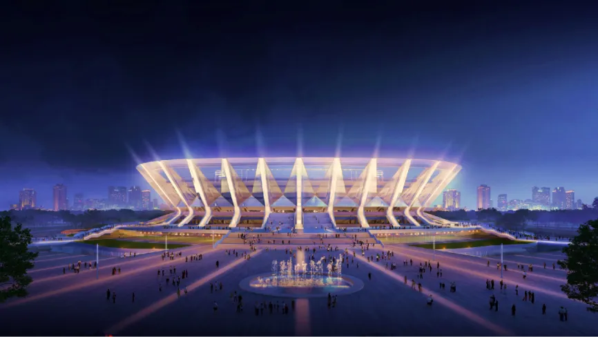 崑山奧體中心,總投資21.51億元,靈感源於非物質文化遺產——“摺扇”