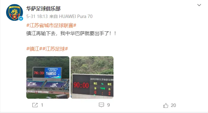 鎮江華薩曾奪得“蘇超”冠軍(視頻來自華薩俱樂部的微博)