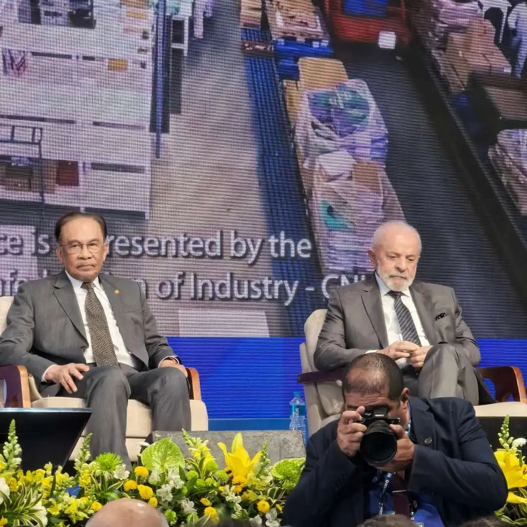 當地時間7月5日上午,巴西總統盧拉與馬拉西亞總理安瓦爾共同出席金磚峯會工商論壇並發表主旨講話(攝影:作者)
