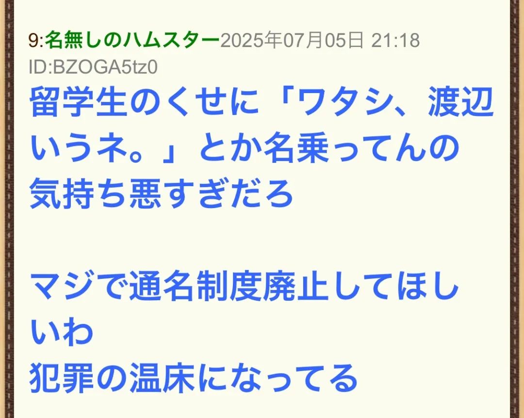 “區區一個留學生,説什麼我叫渡邊之類的自我介紹,噁心死了。