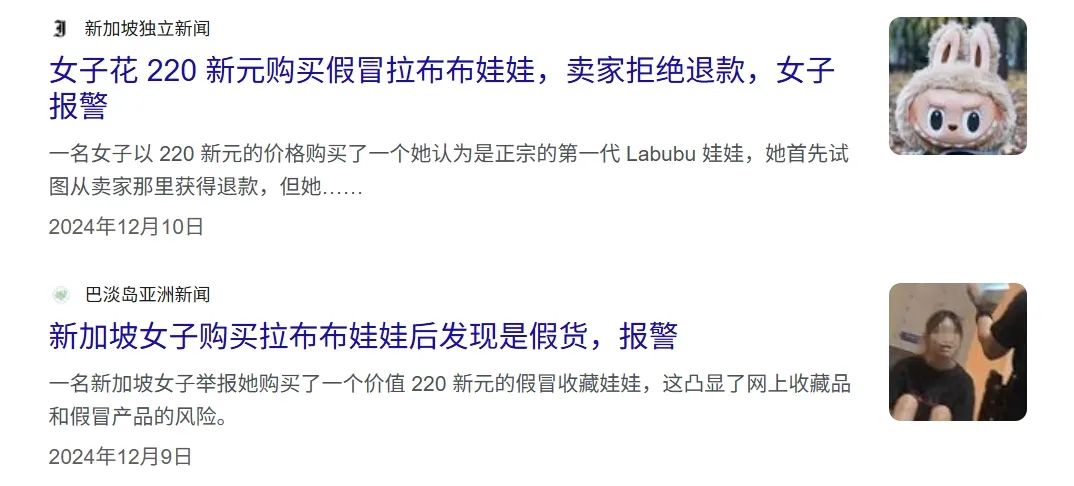 海外第一例盜版LABUBU新聞發生在去年年底的新加坡