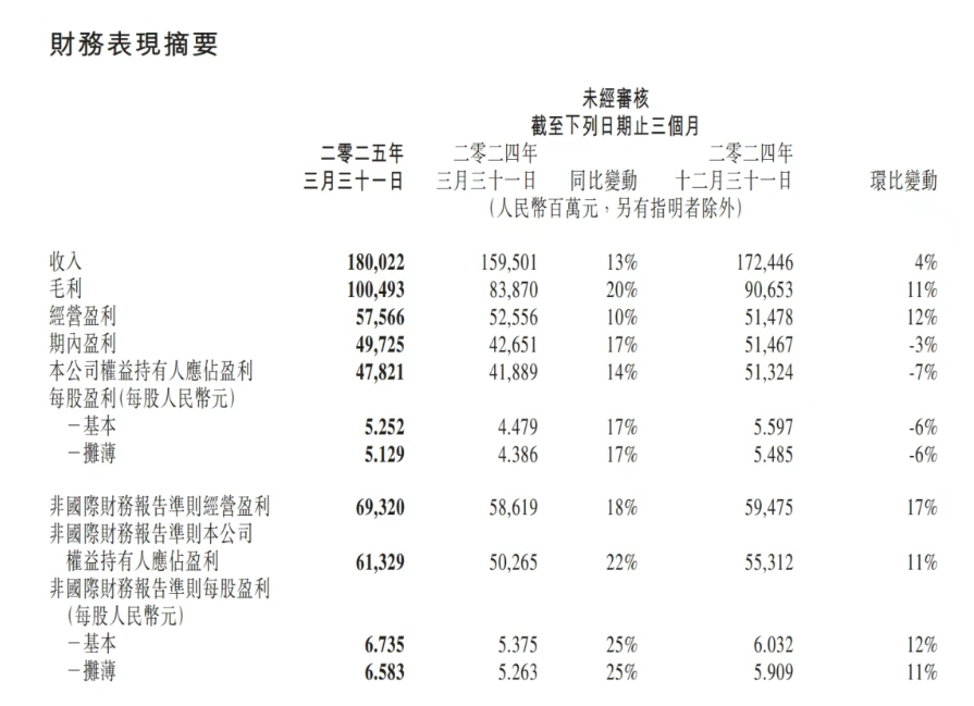 騰訊控股(00700.HK)2025年一季度財報顯示,實現營收1800.2億元,同比增長13%,毛利1004.9億元,同比增長20%,經營利潤(Non-IFRS)693億元同比增長18%。