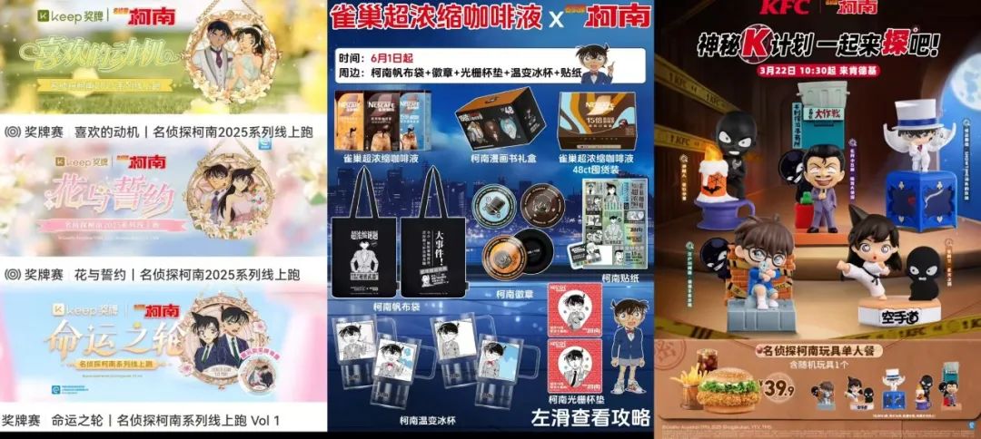 喜訊是這次《名偵探柯南》顯然迎來了事業新高。從線上到線下,走哪都能看見柯南的聯名,堪比“大寶天天見”。肯德基、雀巢咖啡、Keep、泡泡瑪特……“柯南怎麼又火了?是因為電影嗎?”可能是路人近期最好奇的問題之一。