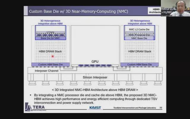 遷移到HBM5 後,內存堆棧預計將包含 NMC (Near-Memory Computing) 模塊。這種集成將降低 HBM 和 AI xPU 之間的帶寬要求,改善計算定位,並提高整體系統性能和能效。