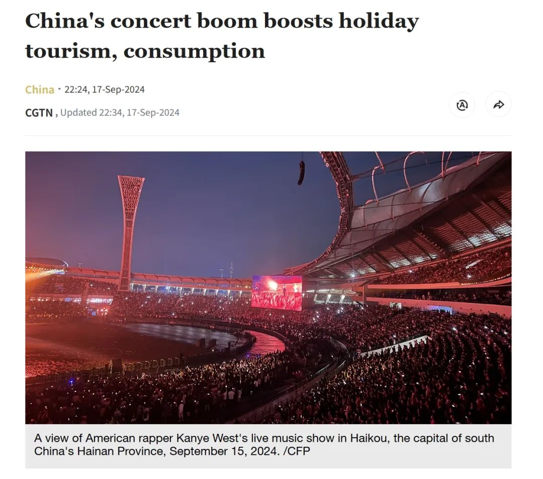 CGTN報道:演唱會繁榮促進了節假日旅遊消費