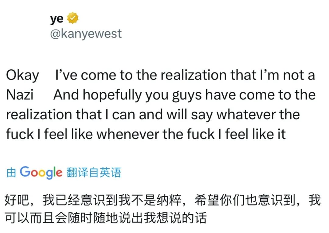 不過,在講求團結一切力量來為我所用的**“統戰智慧”**下,對待Kanye自然是“取其精華,去其糟粕”,畢竟在西方再多口誅筆伐,那都是明面上的,歐美人私下對侃爺那是照聽不誤,所以客觀上的影響力依舊巨大。
