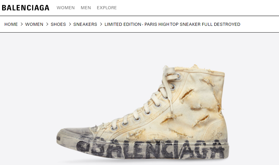 巴黎世家的破爛鞋,當時發售的時候是1850美元,但是在二手平台的成交價是2500-3000美元,溢價了35%-60%。