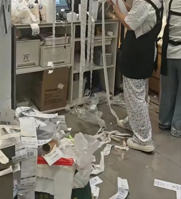 ▲店員在社交平台曬出瀑布一般的小票照片。新浪網