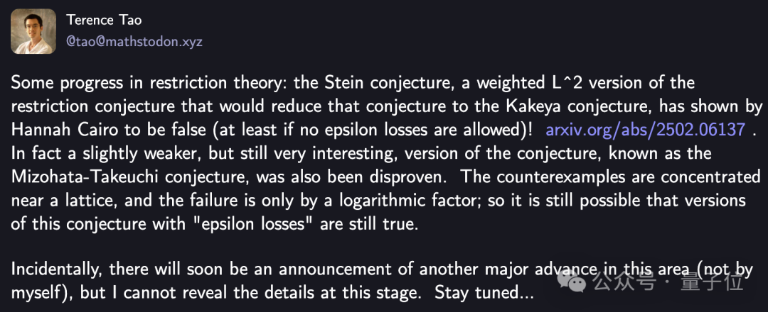 值得一提的是,今年2月陶哲軒還預告了這一重磅成果。
