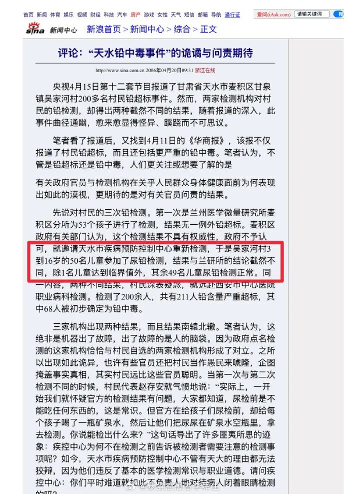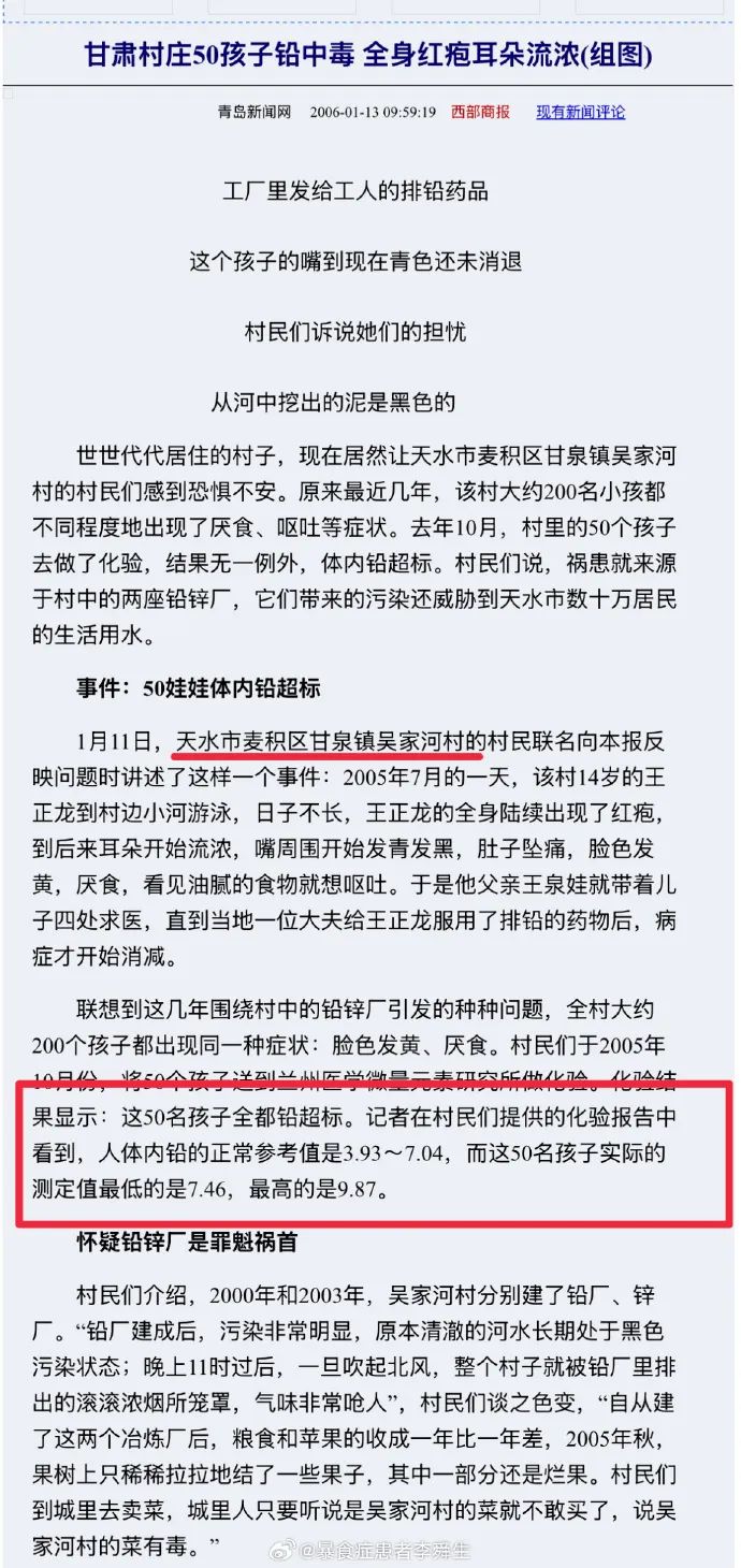 談談甘肅天水的兒童鉛中毒新聞_風聞