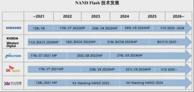 NAND這邊,長江存儲近年來推出了Xtacking技術,這是全球首個成功商用的3D NAND混合鍵合工藝。按照長江存儲的説法,能夠把產品開發時間縮短至少3個月,生產週期縮短20%。