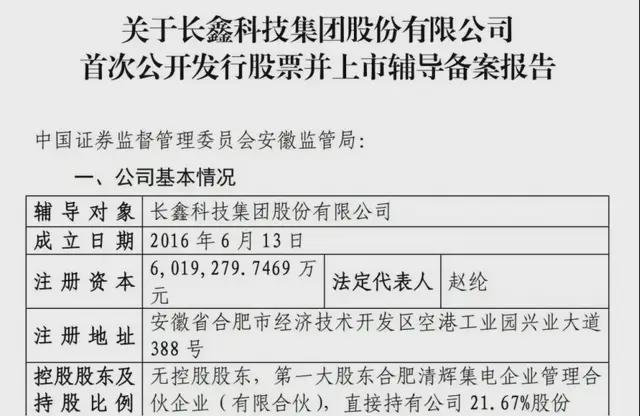 據證監會官網顯示,長鑫存儲啓動上市輔導,輔導機構為中金公司、中信建投。輔導文件顯示,長鑫科技註冊資本達601.9億元,無控股股東。