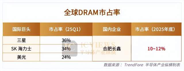 從市場佔有率來看,據估計到2025年底,合肥長鑫在DRAM可能增加至10%~12%,而長江存儲2025年第1季的全球NAND市佔率已達8%,預計年底也可增加至10%。