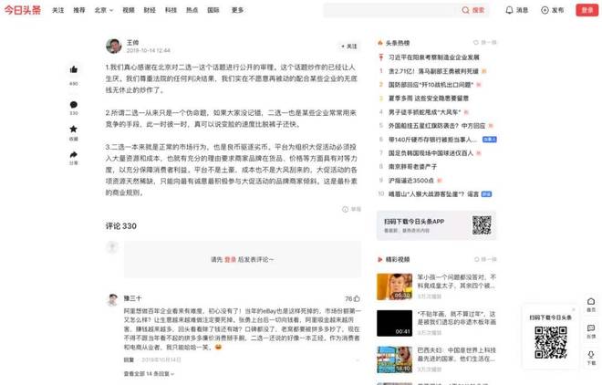 王帥説,電商平台為組織大促活動投入大量資源成本,有理由要求商家在貨品、價格等方面給予對等力度,以保障消費者利益,還強調 “二選一” 是偽命題。