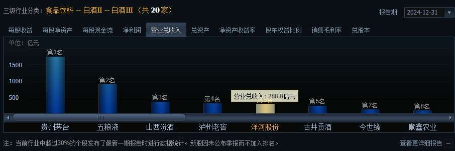 這樣的業績表現,讓洋河股份處於一個相當尷尬的位置,因為這表示其成為頭部酒企中唯一一家營收和淨利潤“雙降”的企業。穩坐了14年之久“白酒老三”就此旁落,而且一口氣被山西汾酒和瀘州老窖相繼超越,行業排名滑落至第五。