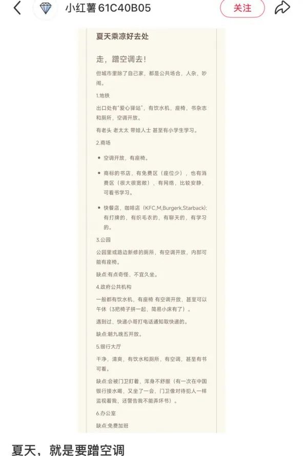 可出行去合適的避暑地,需要有錢、有閒,這樣一對比,分佈在家附近的各種商場,就成了吹免費空調的最佳場地。空調更充足的圖書館、博物館,也是這個賽道的熱門選手。