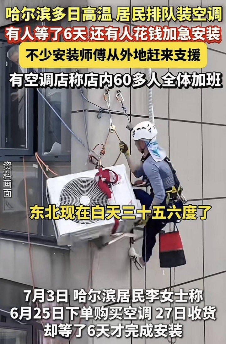 排隊裝空調的人爆單了,師傅明顯不夠用了,全體加班不説,還得緊急從外地找支援。