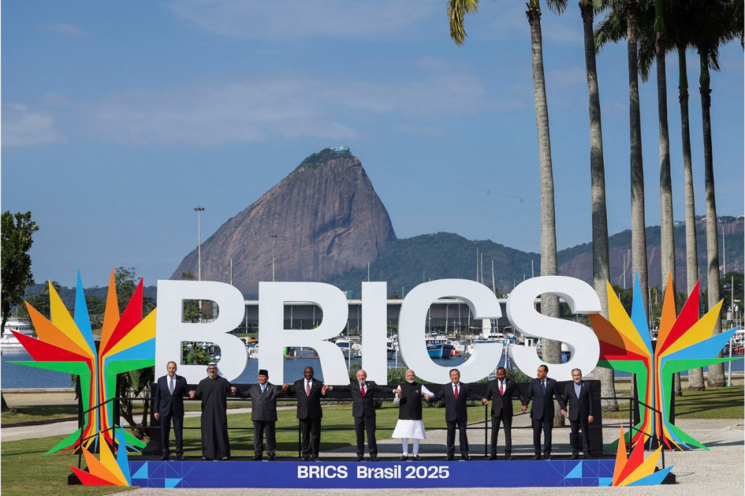**▲**金磚國家在峯會聯合聲明中警告關税上升威脅全球貿易,數小時後特朗普在“真實社交”上發文稱,任何與金磚國家“反美政策”結盟的國家都將被加徵額外10%關税,且不設例外,但未説明“反美政策”具體所指。來源:Reuters