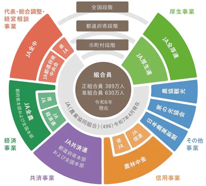 農協包含全國、地方、基層三級組織架構,將原本形如散沙的農民被團結在一起,使得農協在資源統籌聚合方面具備了廣泛優勢。