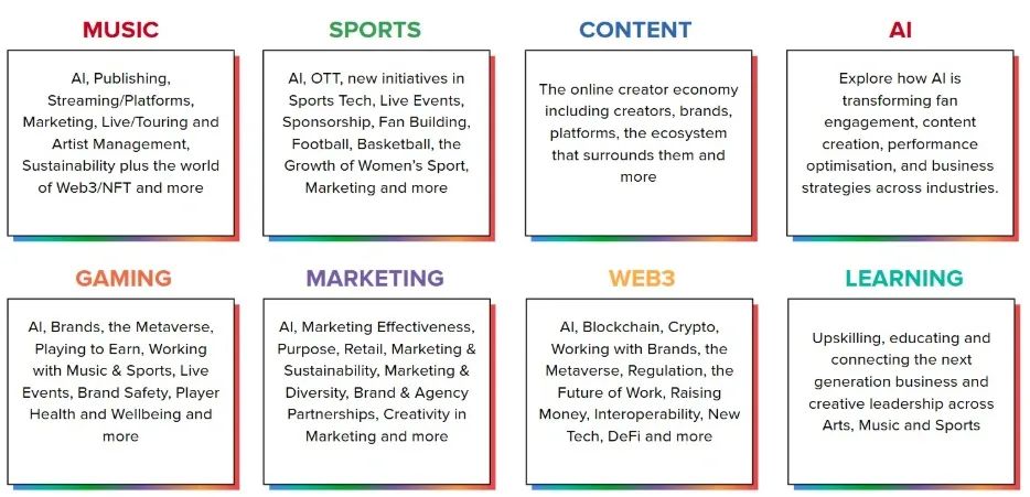2025年ATM步入創辦的第20個年頭,除了2020年由於大環境影響採用了線上直播,長期以來都以線下峯會和一系列論壇活動的形式進行。今年會期定於9月29日-10月1日,與往屆一樣依然選擇在F1新加坡站同一周進行。在大會議題設置方面,今年除了體育、音樂、電競、市場、內容等傳統板塊外,WEB3和AI兩大互聯網科技界焦點前沿板塊也將成為ATM的重要議題,對應了2025 ATM年度峯會“Back to the Future”(回到未來)的主題。