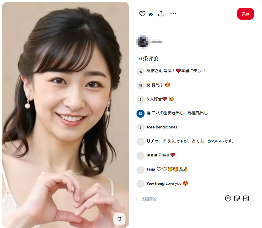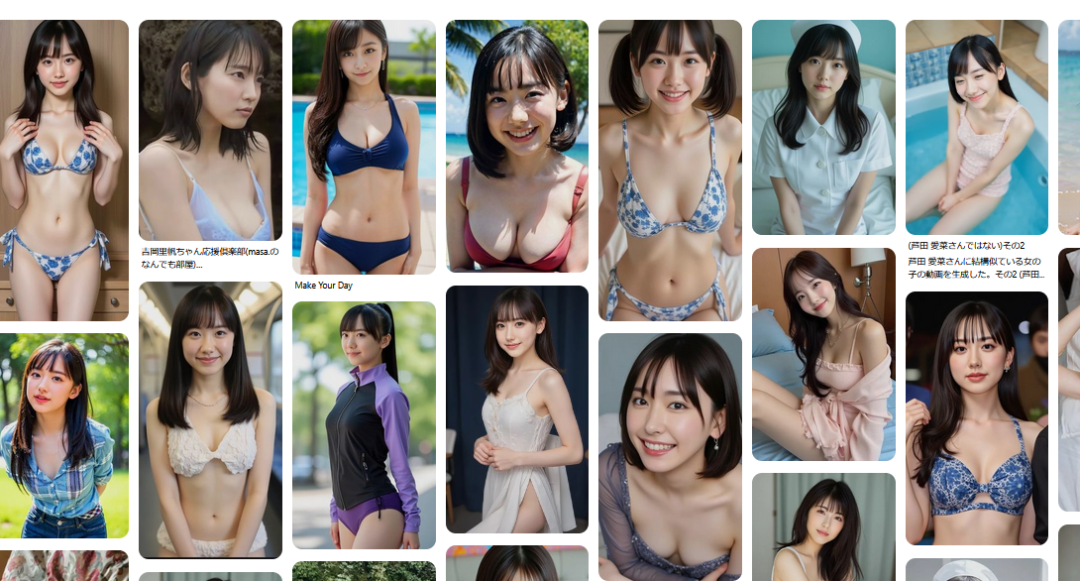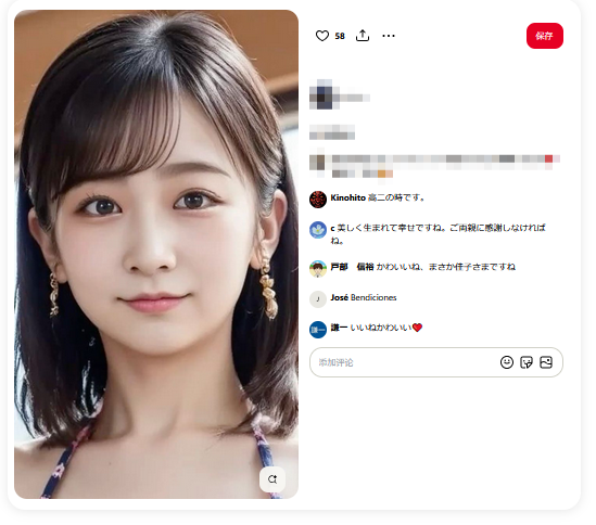 最過分的是,不僅視頻平台出現了大量虛擬視頻的瘋狂傳播,在圖片共享SNS之一Pinterest上,也出現了大量讓佳子公主身着泳裝、緊身衣的各式AI生成圖片。