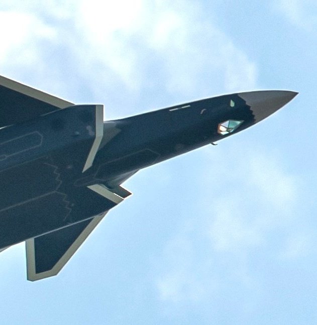 最新殲-20S上改進型光電瞄準系統的特寫。(圖片來源:X)