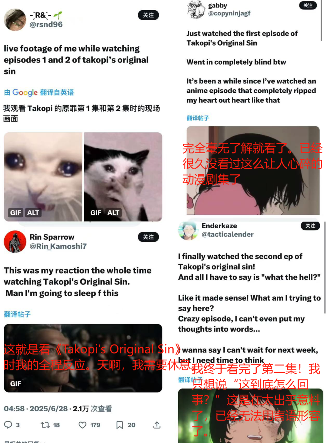 在動畫營銷方面,《章魚噼的原罪》OP 邀請到了日本當紅歌手ano演唱,大量周邊同步動畫放送開啓販售,期間還有官方主持活動鼓勵觀眾討論。雖然不少觀眾是被温馨治癒的預告和OP“騙”進來的,卻被高水準的製作和抓人的劇情拿捏。眼下各國觀眾都是一個樣,嘴上説着“看EMO了”“純折磨”,還是準時守候動畫更新,心甘情願在評分網站打出高分。