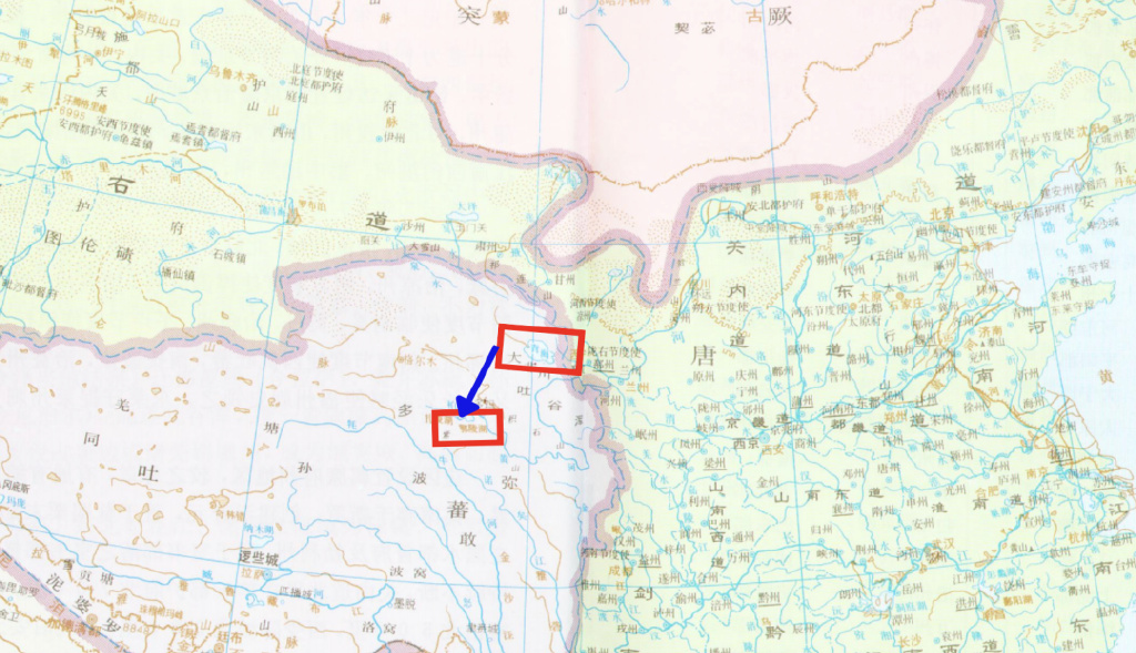 唐朝北路大軍行軍路線的大致標註 底圖來源:《簡明中國歷史地圖集》
