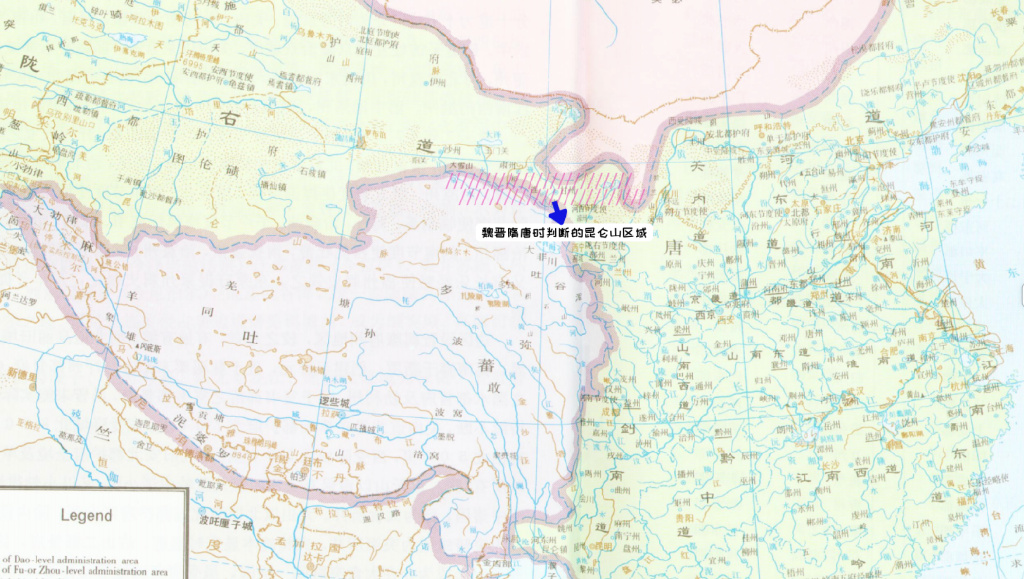 魏晉隋唐時對崑崙山所在地理位置的大致標註 底圖來源:《簡明中國歷史地圖集》