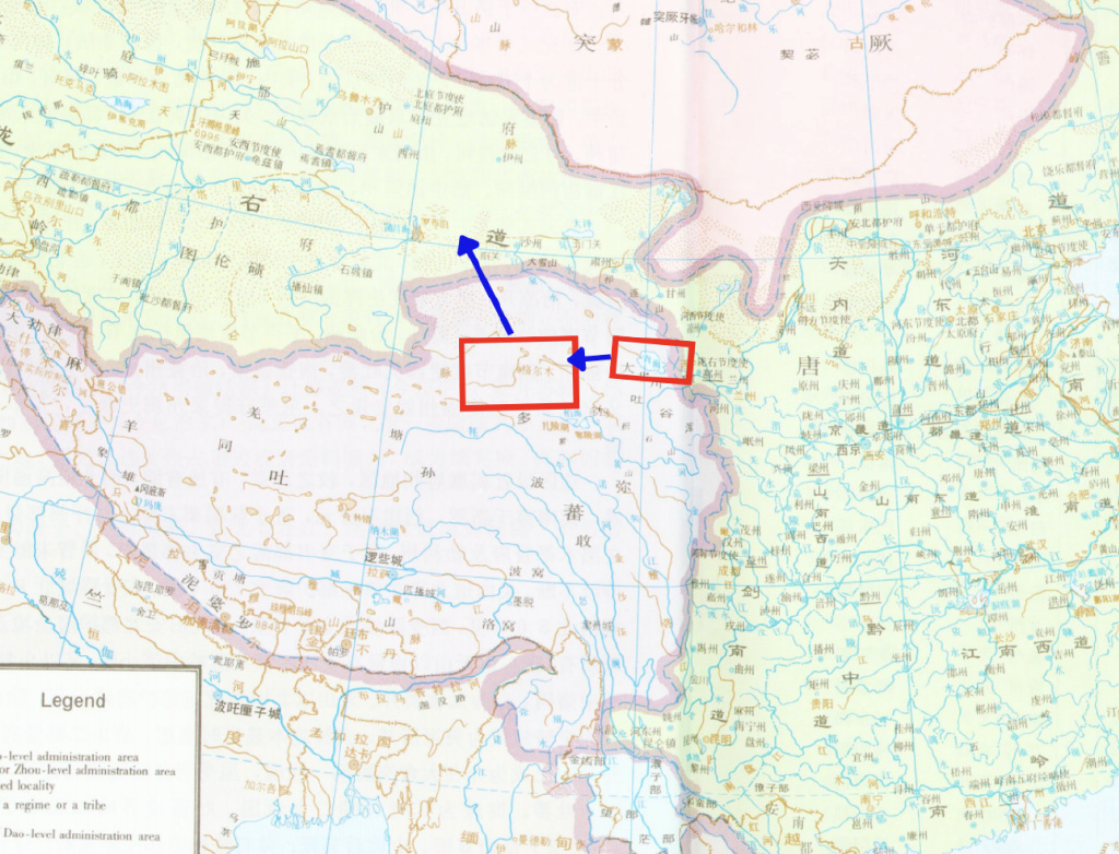 唐朝南路大軍行軍路線的大致標註 底圖來源:《簡明中國歷史地圖集》