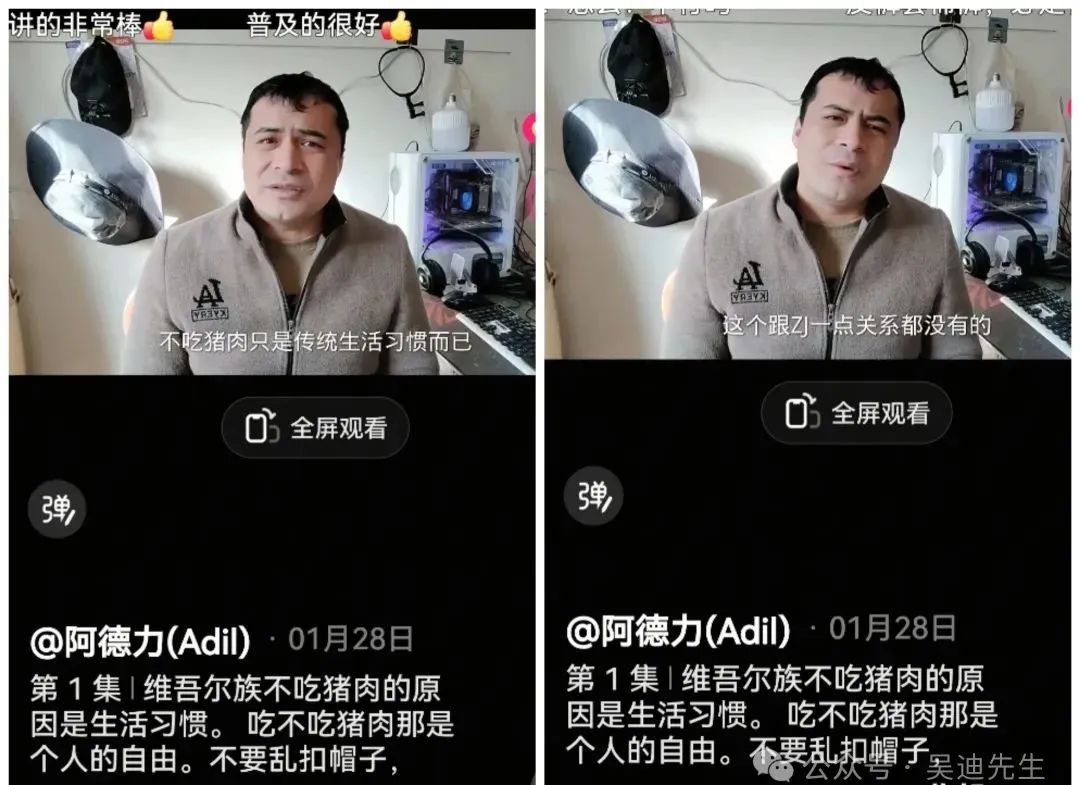 以上是新疆的兩位維吾爾族年輕人發的視頻,表達的很清楚:自己現在不吃豬肉只是傳統生活習慣的影響,雖然曾經的的確確受到宗教影響,但是現在已經和宗教沒有一絲一毫的關係了,因為新疆的年輕人大部分都是不信宗教的。